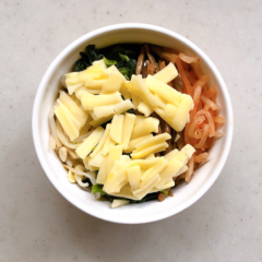 ナムルもお好きな量盛り付けて、ミックスチーズを散らします