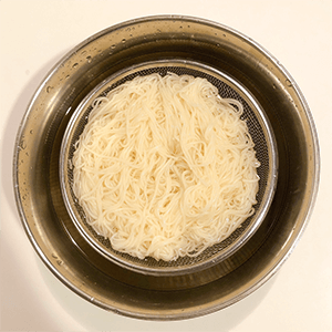 素麺を指示通りの時間茹で、冷水でぬめりを取る