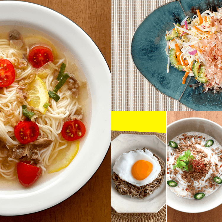 目玉焼きをお好みの焼き加減でつくり、先ほどの素麺にのせたら完成