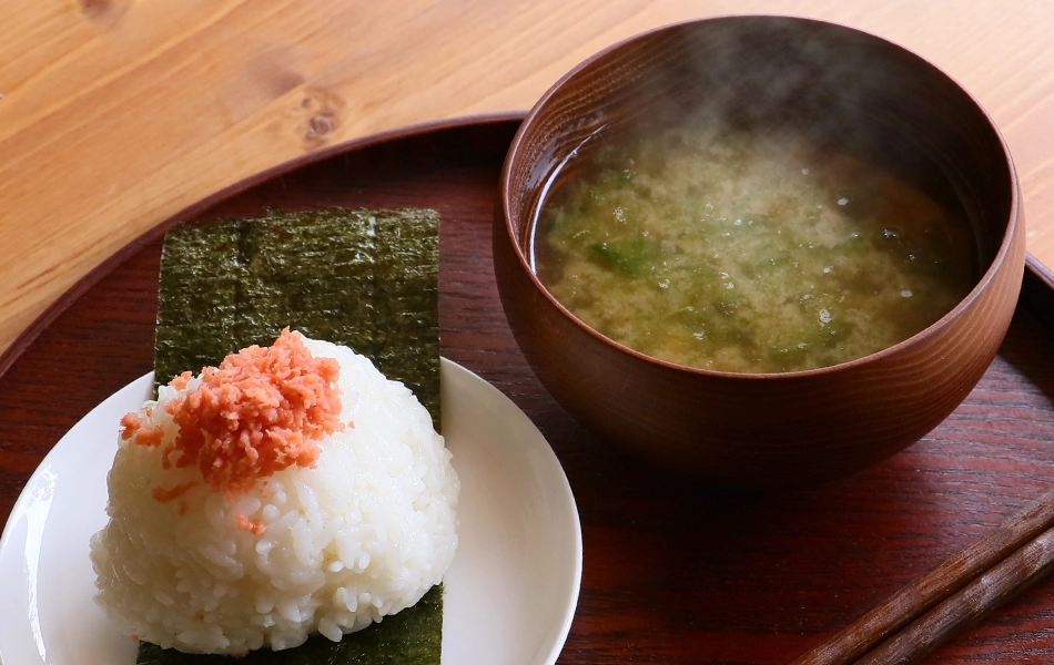 味噌のおみそ汁とおにぎりの相性は抜群です。