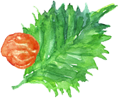- 大葉の千切りとよけておいた丸ごと梅をのせて完成