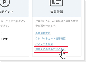 退会をご希望される方は、マイページの"退会をご希望の方はこちら"よりお手続きをお願いいたします。