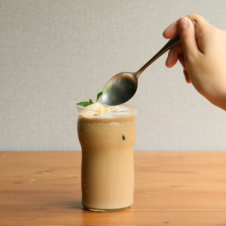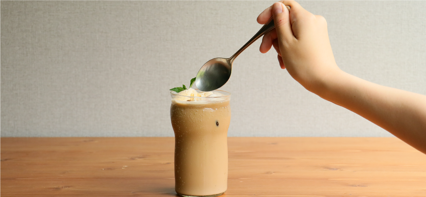 伊藤亜木さんのコップで作るコーヒーフロートは落ち着いた雰囲気で気品があります。