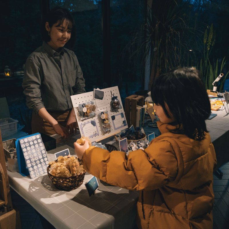 自社製品の物販の他、望遠鏡を使用した星の観察や