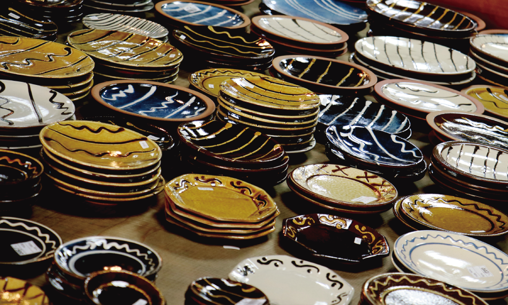 “スリップ”と呼ばれる化粧土で装飾して作る“スリップウェア”