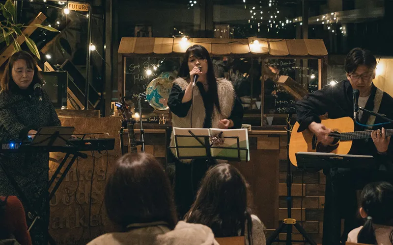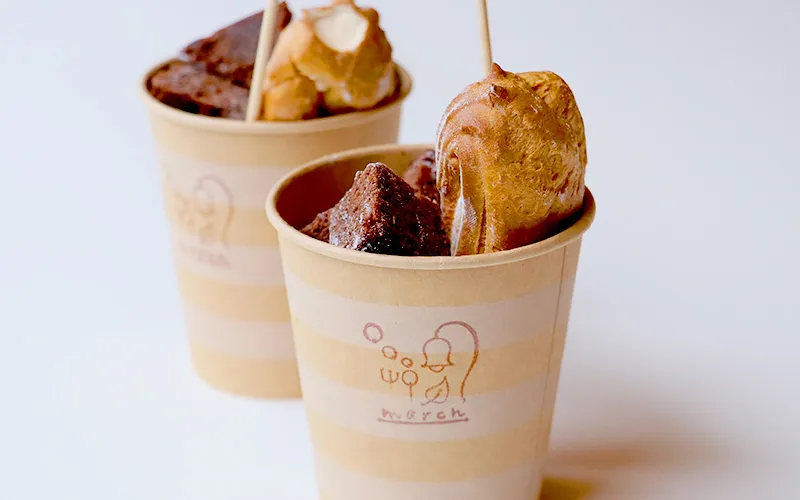 自社製品の物販、料理教室や