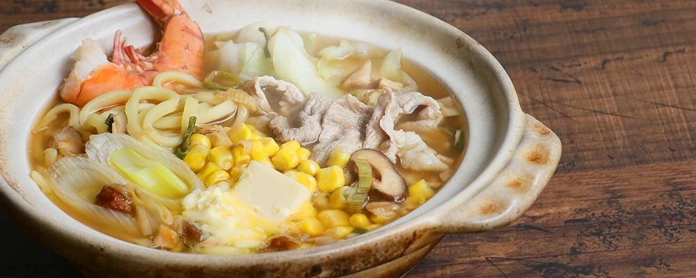 最後の〆は、やっぱりラーメン。トッピングにコーンやもやし、わかめを加えて、本格的な濃厚味噌バターラーメンをお楽しみいただけます。