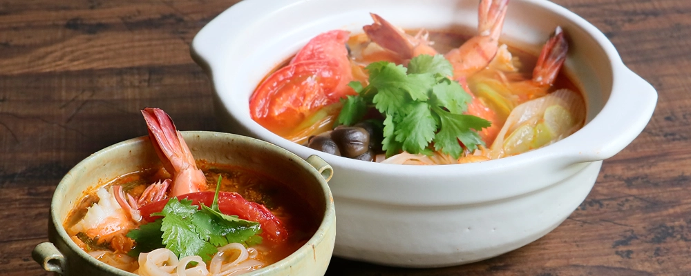 厳選した8種類のハーブとスパイスを独自にブレンドし、タイ現地の味を再現した本格トムヤムクンで「エスニック鍋」を作りました。