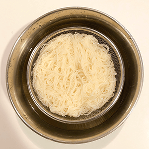素麺を指示通りの時間茹で、冷水でぬめりを取る